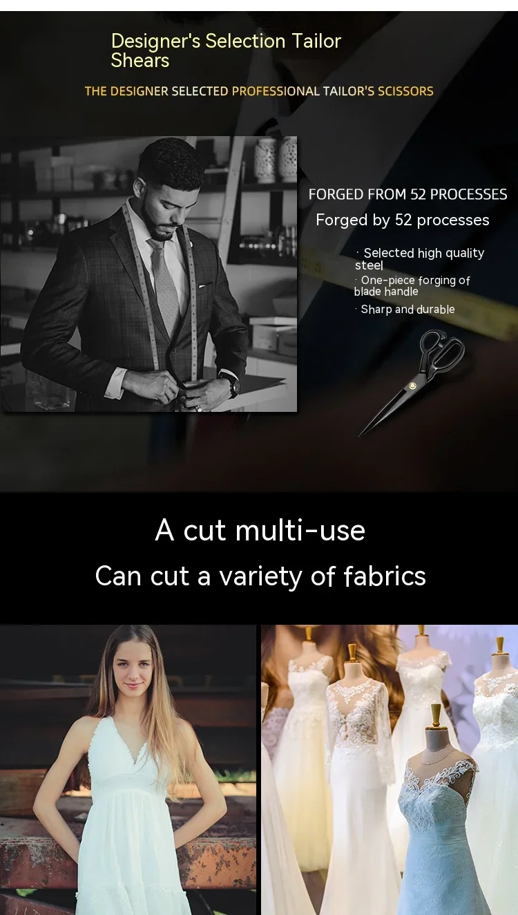ALL PURPOSE USE SCISSORS: This sewing scissors can be used for all kinds of cutting tasks. From fabrics and leather to plastic bags, packaging materials and thin and soft materials, these scissors are quite versatile.